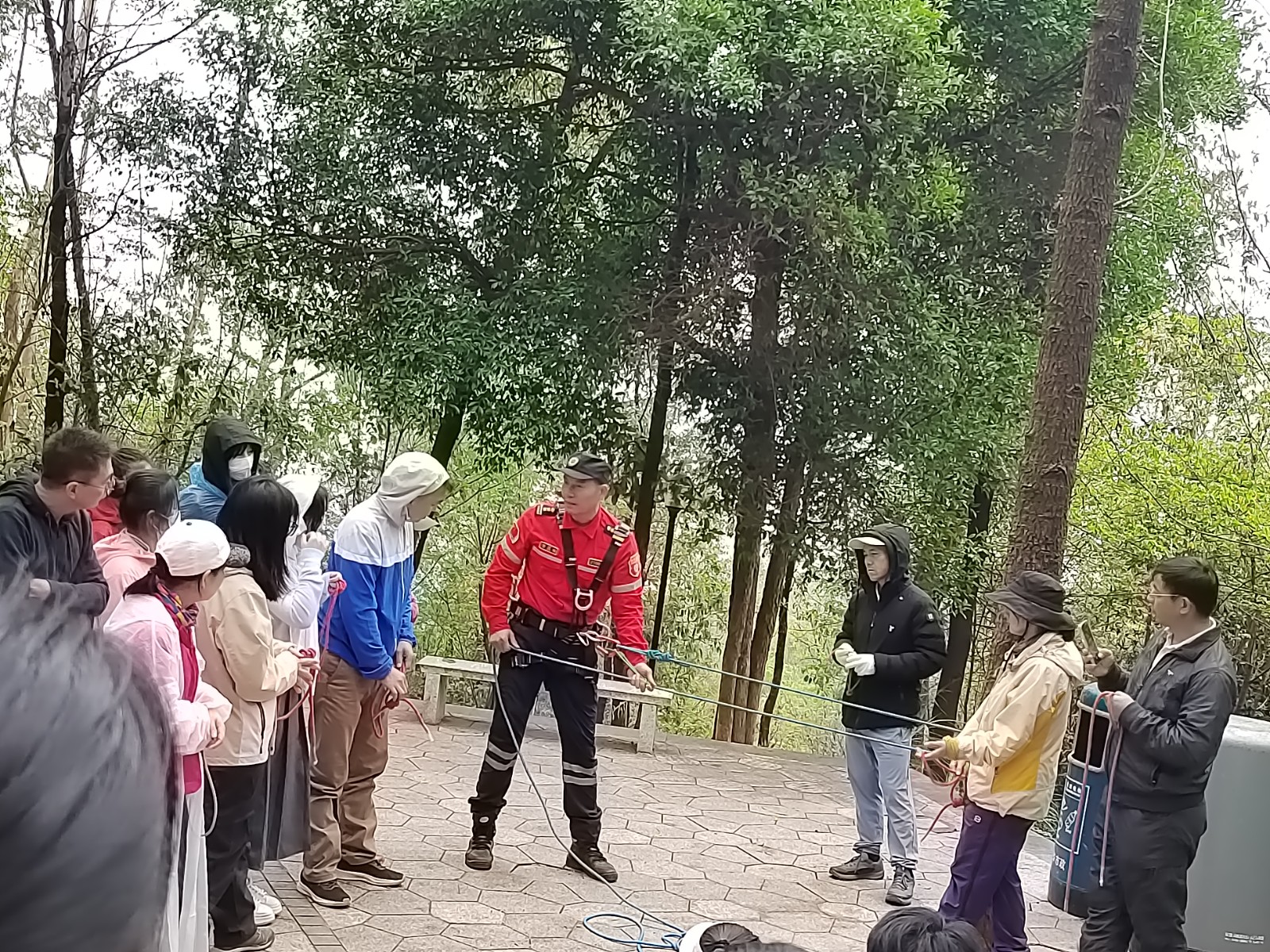 黄埔八期-文博宫&鸡公山户外首次拉练记录2025 年 3 月 29 日 阴天 今天,我们在砺剑联合公益救援组织下,开展了为期一天的 2025 年首次文博宫&鸡公山拉练及绳索技术招新训练。本次试炼以户外知识(登山包、衣服、鞋子、登山杖的使用;方向辨别、登山技巧、动植物防范、地形知识、环境保护、注意事项等)、户外准备(心理、食品、水、应急物品等)、户外技能-初步绳结(单双&反穿 8 字结、渔人结<防脱结>、平结、蝴蝶结)为核心,通过理论+实践的形式帮助学员掌握户外技能,锤炼心理意志。 上午九时,拉练活动随着方丈教练组织的热身结束正式从文博宫拉开帷幕。队员们经过不断攀登抵达第一休息平台,教练详细为学院讲解了登山包、登山杖的原理、选择及使用方法。中午十二时,队员们正式抵达午餐草坪,大家分享了各自带来的美食畅聊学习心得。下午十五时队员们在经过了鸡公山登顶后,于下山凉亭位置展开了初步绳结的学习实操环节