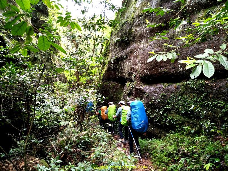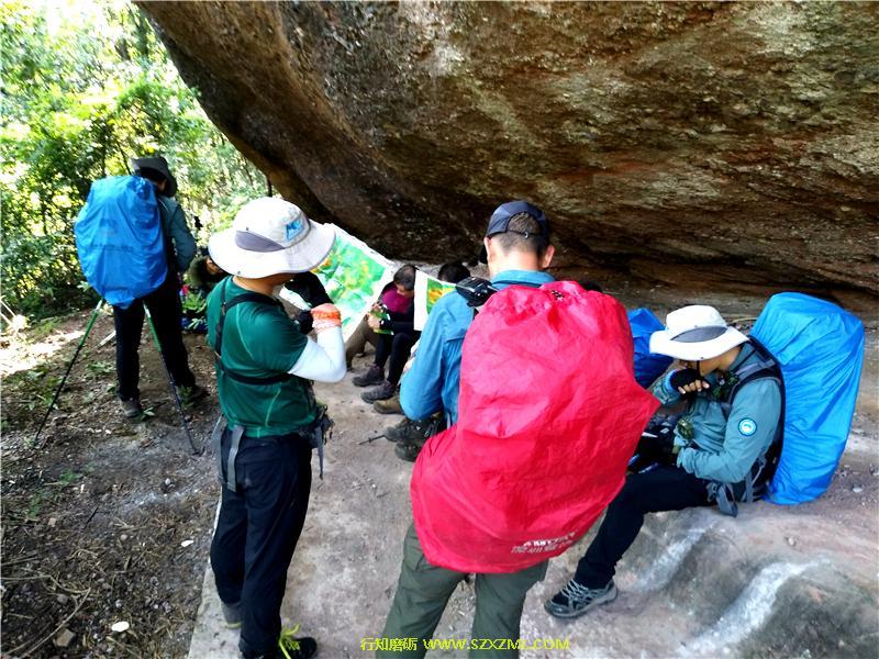 教练组织集合后围圈总结和分享夜徒经历,听取教练的指导和批示(有的人被罚俯卧撑,庆幸没有我,感谢我的三人组童鞋。),之后按计划按组行进,轮值领队带队,中途教练会让我们学习用专业的方法找位置或线路,历经几山百谷千河万水到达巴寨大门,我们偷偷买 水喝了后又出发,历经一公路几山百谷千河万水多条桥后到达营地CS2,也就是金龟岩下,此时已是深夜八点半。