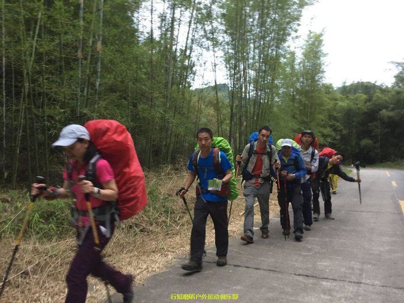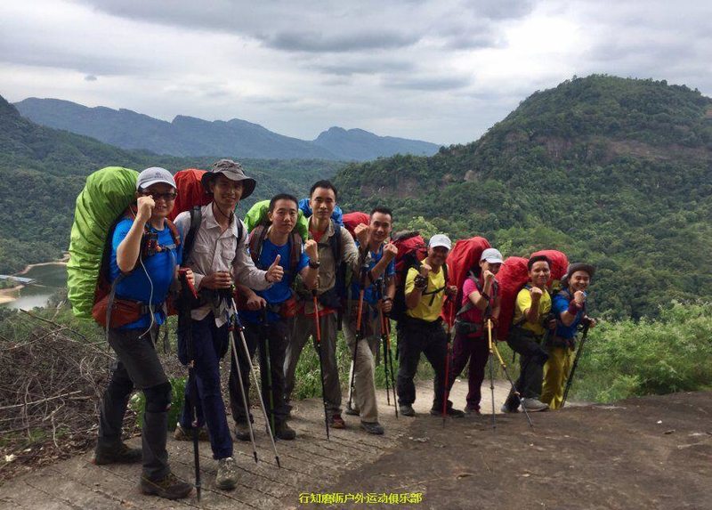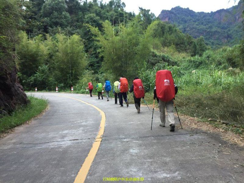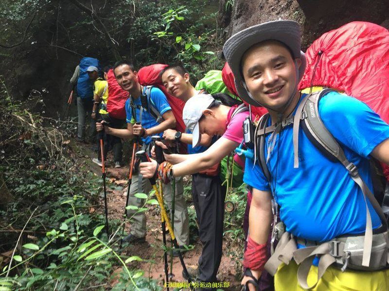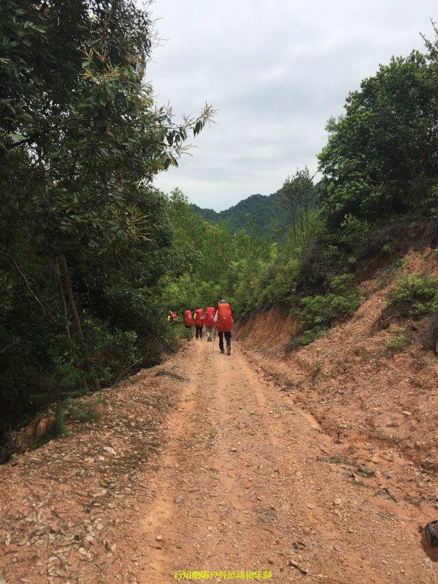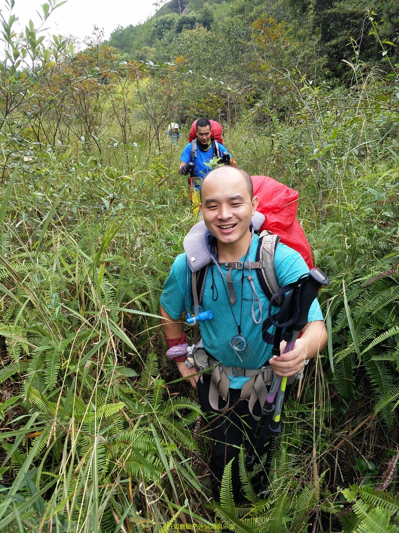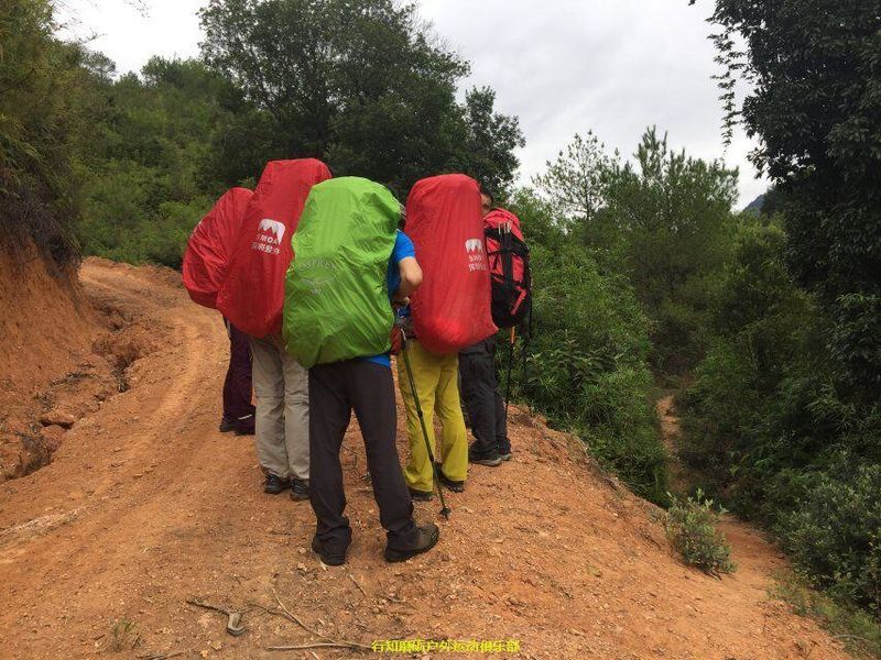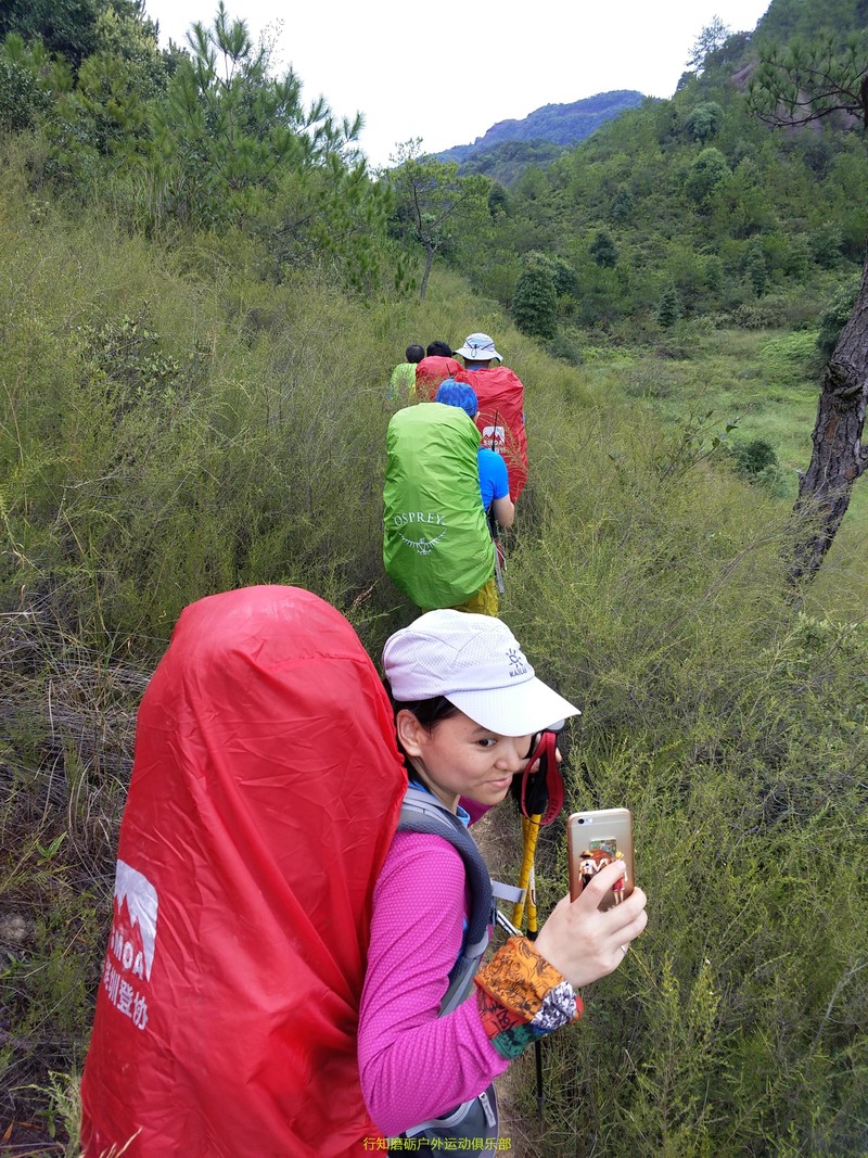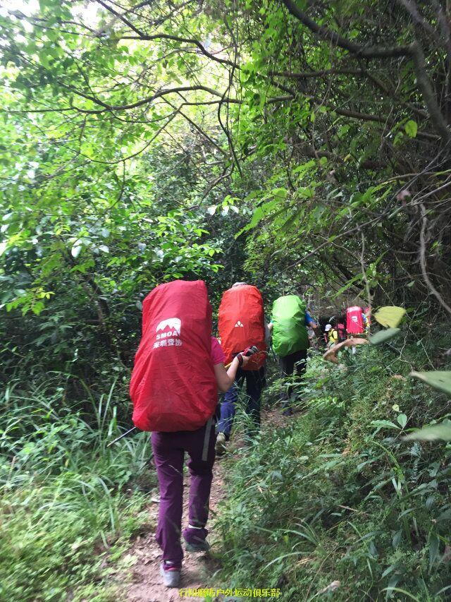 接下来是我们力狼带队,原计划是要翻越白寨顶渡船到韶石山庄的,结果因为时间已经很晚加上要上课,大家一致改变线路,选择了金龟岩大门下撤,这段路基本都是平路,力狼简单描述分工后,大家就加速前进了,途中渐渐下起大雨,
