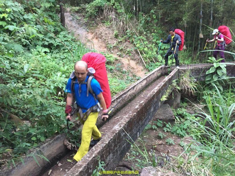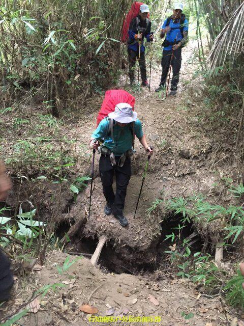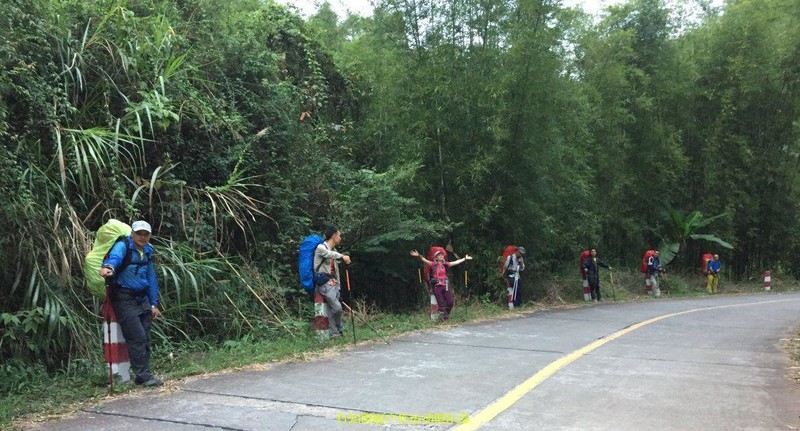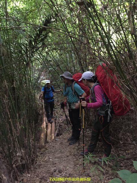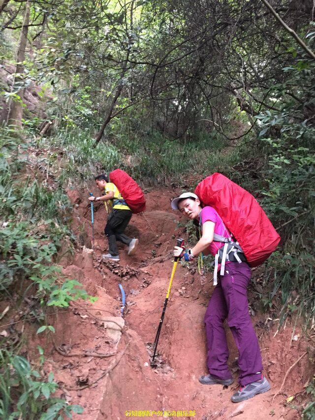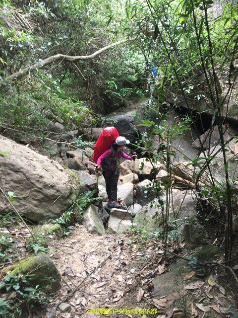 秋天同学开始带我们装逼带我们飞了 ,秋天是从大坝带到巴寨大门也就是暖坑,前一段是比较陡峭的爬升,因为秋天也是老驴了,身体素质好,走的稍快,没有顾忌后面队员的体能,我想可能是因为我带队浪费时间太多,接下来路程还很远,他想尽快带大家感到营地吧。