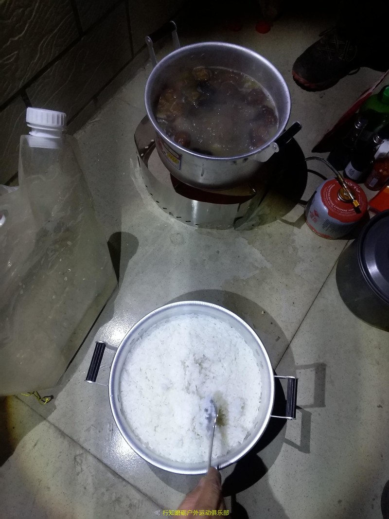 接下来日子好过了,扎营,做饭,奔波了一天终于到了补充体能的时刻,看看这么大一锅米饭。