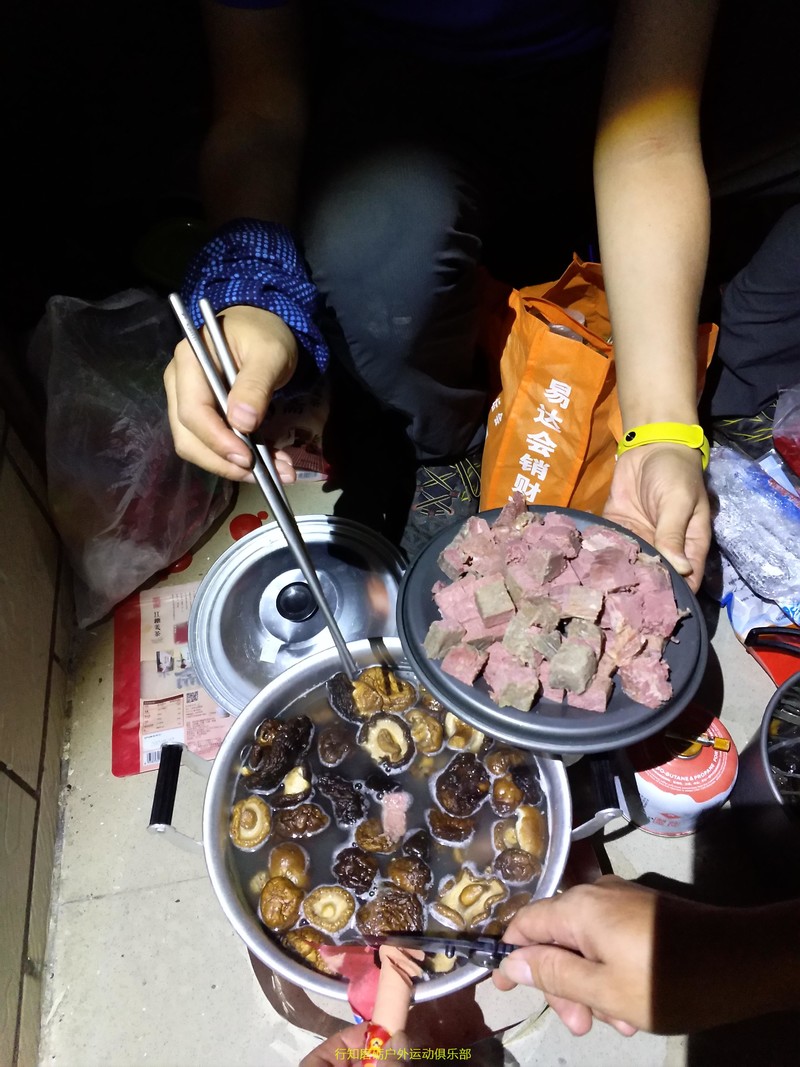 粒哥买的牛肉,据说牛肉就买了200多块钱的,一组的同学说他们队伍所有伙食加起来才200多块钱,知道我们组有多FB,哈哈,这一锅叫乱炖,户外嘛,只要是干净的,炖熟就好,没有太多讲究。