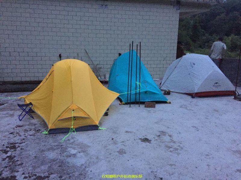 结果走了一段,地形地貌晚上几乎很难看到,方位角偏离,随后豪哥也很果断,迅速认识到了路线的错误,然后原路返回走进村子后右转,步入了正确路线。我们是02:10出发,3:30到的营地,速度是不是杠杠的,我们也是第一个到达观音堂营地的,当时观音堂的居民还亮着灯没有休息,不太理解,现在是凌晨三点半的时间,怎么都不睡觉呢?我们悄悄的搭好帐篷,并没有发出任何声音,应该是没有打扰到他们,没多久看他们室内的灯都熄灭了,应该是休息了,我们也进入帐篷开始睡觉了,感觉刚睡着,就被电话吵醒了,心想谁会这个时候打我电话?见鬼了吗……原来是最后一组到的梅雨仰同学打来的。因为他计划是和我混帐的。结果他选择和起点混了。接着就睡着了,一觉到天亮 。