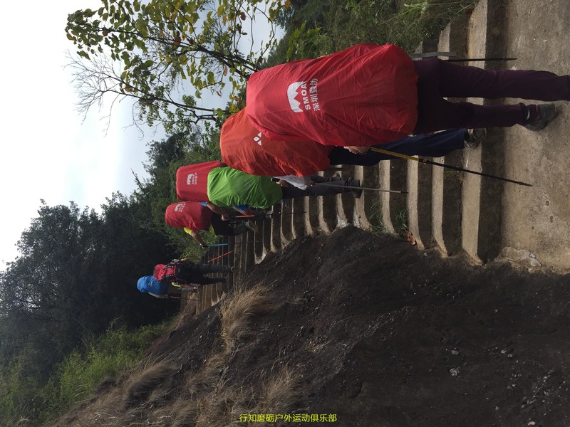 14:20从大坝出发,秋天带队,我收队,前往巴寨大门,这一段路爬升的坡度较陡峭,所以行走较慢,于15:20才到达巴寨大门;但由于线路单一,没有叉路,所以走得比较顺利;