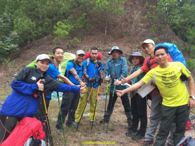 10.14日早上6:30我们就起床准备早餐了,主食面条,按人员分工进行的,早餐过后,两组人员围坐一圆圈,在方丈和等我来教练的主持下,大家对昨晚的夜行进行了行走分享;今天的行程按计划是要到达金龟岩营地,路程有15公里,因为早上的分享和拉伸等原因,我们10:30才从观音堂出发,第一段大海带队,起点收队,但由于对地图的地貌识别不够,我们在叉路口没有选择对,走上了五仙岩才又重返轨迹上,选择了较远的一条道,于14:00才到达大坝;