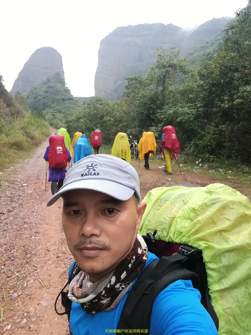 到达金龟岩营地后,就是废弃的景区收费点,但只有一小块平地,什么都没有,我们还走过了。因天气原因和时间因素,我们两个小组经教练同意,临时改了最后一段路线,直接到金龟岩大门;我领队,秋天收队,一路大路,没有太多悬念,14:45分我们就到达了目的地,二组晚了二十分钟也到达了;