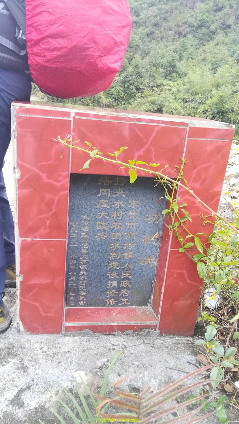 第二天630我和小罗就起床做早餐了,紫菜面条;这一次我们的行程计划比上次做得详细多了,具体到每一餐的人员分工都做了安排,所以轮到谁大家心里都明白,这样大家都能提前准备,不至于一锅乱;早餐过后,800我们进行行前拉伸后,就按行程计划表实施了,第一段,豪哥领队,大海收队,第一天,方丈跟我们小组,老尹跟二组;由于行程计划表的行走计划是豪哥做的,所以在出发时,没有做过多的人员分工,也没有对行进方向做很好的定位,说实在的,由于时间关系,我也没有拿地图出来量方位角,甚至我们所处的位置也没真正明白;就这样,我们全组人员,就稀里糊涂的跟着豪哥走了,凭感觉,我们从水泥路上往山的方向走,到了周屋村,沿着村子旁的小路,到达了一处大坝,由于水流的原因,未能过大坝,而大坝处立的一块石牌写的落款,我们才发现走错了路,后来拿出地图重新定位,才找到自己所处的位置,重返起点,为此我们花了两个小时,多走了四公里的路;后来进了张屋村,在找登山口的时候,也是几经周折,才找到正确的路;在上山两公里左右,我们遇到一群黄牛群,正好也是在一个叉路口,当时领队为了躲避牛群,选择了右边的一条道,走到山上,呈现两处山谷,才发现又走错了路,还好离正确的轨迹不是太远,及时横切到了正路上;到达一片竹林,三叉溯溪路口豪哥说第一个检查点到了,但是教练挖了个坑,说没到,所以我们又往前到达一处有临时羊棚的溪水处才交接,后来才知道是错过了。