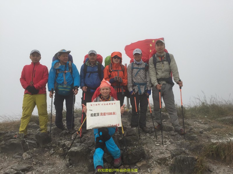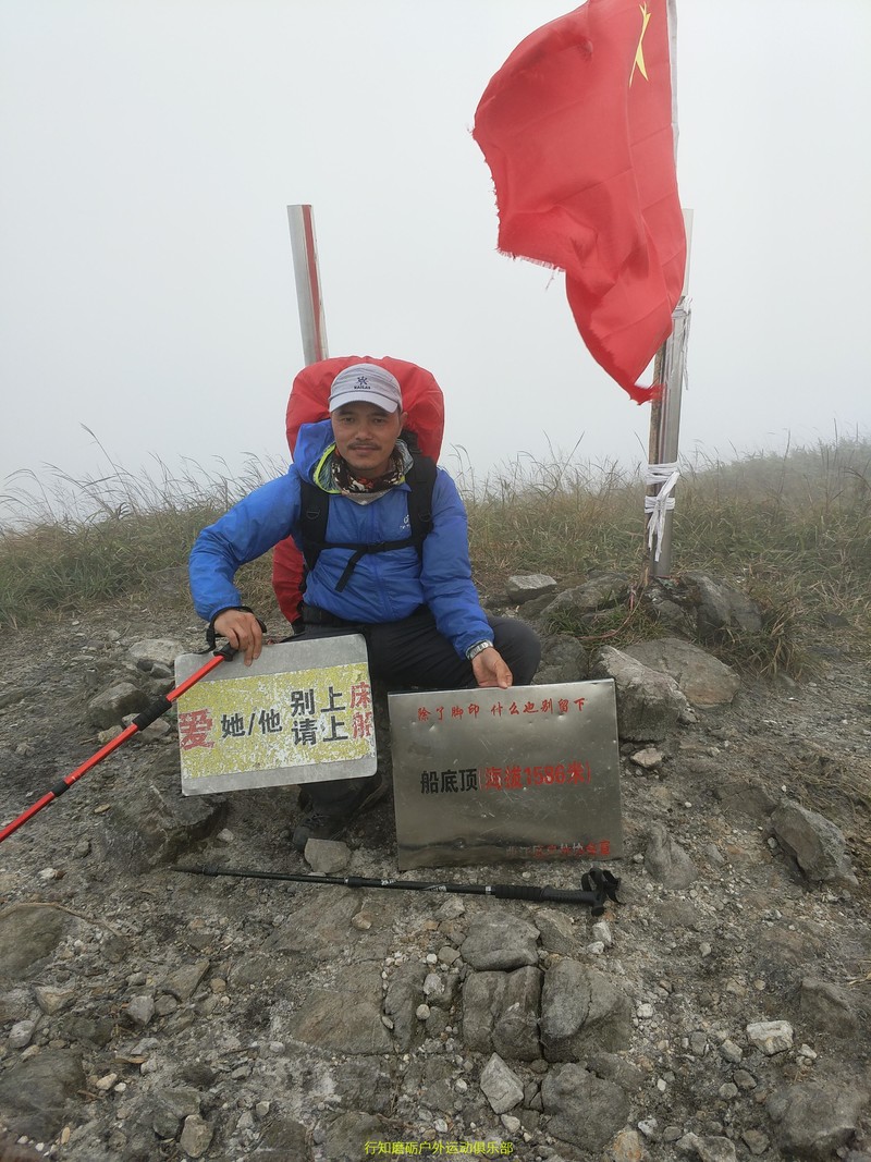交接粒子后,我们简单的午餐过后,继续前进,粒子是我们小组最后一个领队,就算每个人都领航了一次了,后面的路都是相对明显的,到达计划中的营地时间很早,最后大家一致研究决定,今天多走点路,到白房子露营;在船底顶山脚驿站休整后,我们继续由粒子领队,直奔船底顶;终于于1530到达了山顶,一面红旗格外抢眼的迎风飘扬,乱石堆中立了两个铁牌子:如果爱她/他 别上;如果爱她/他 请上船!船底顶海拨1568米;原来网络上的一首浪漫的诗是缘于此;短暂的停留,大家在冷风中装逼拍照后,和二组取得相同意见后,决定前往白房子,于是由豪哥领队,粒子收队,出发白房子;