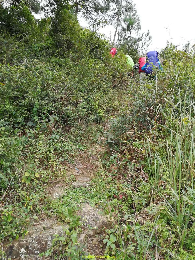 小路上山真不容易啊,途狼在前面开路真的很辛苦,有些路还不明显,需来回确认,一路都是灌木丛,杂草,就是一条荒废的小路。上到烧山那里都花了一个小时。