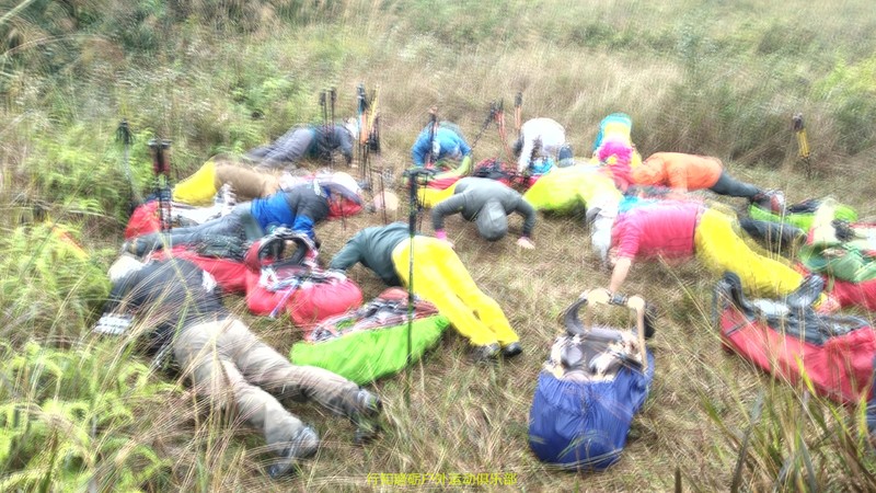 交接完毕,换山海领队了。这一段原计划要花两个半小时到达界碑(闸子崎),结果我们只花了一个小时就到了,这里山海同学就犯了个错误,队伍拉的过快,关心队员意识不强,低估了队员的体力,导致我们后队,梅雨仰和途狼同学走的都很累,这样就给后面的事故埋下隐患。