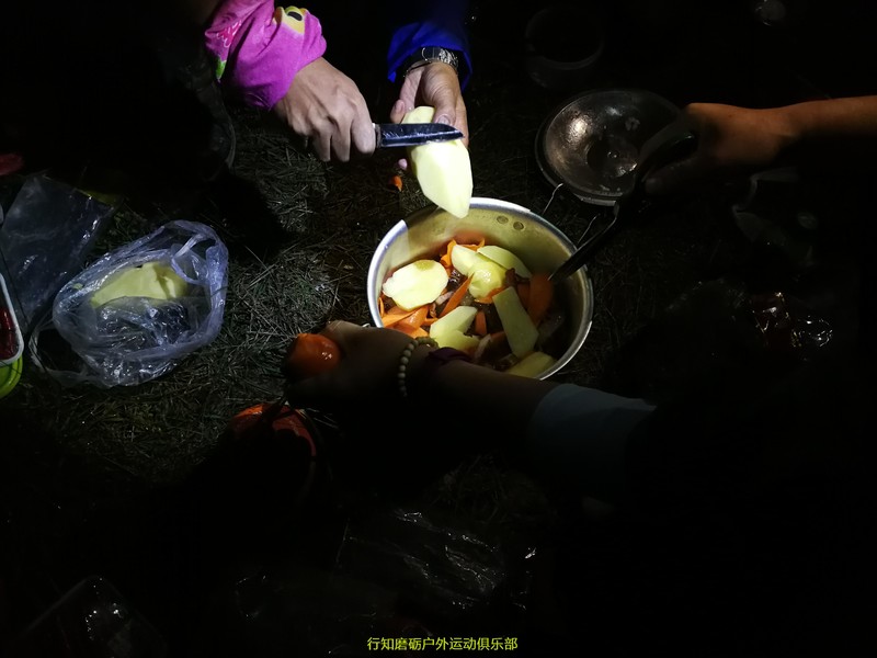 晚上六点四十到达峡洞营地,本来地方就不大,二组已先我们到达,我们就迅速选好扎营地,做起晚饭来,虽然地方不大,但我们营地管理要加强,都没有分什么生活区,营地区,卫生区,娱乐区。做饭时,还被教练说,说我们食材都没有经过处理加工,就带上山了,增加了垃圾的产生,食物准备没有做好,要优化精简,必带和可带要分清楚,计划合理,五大户外理念,要结合自身户外结合。吃过晚饭,分享总结了一天的行程,我们就早早休息了。