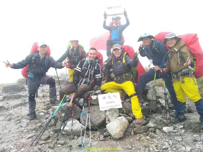 雄哥带队登顶,他们还和方丈教练来了个友谊赛,看谁先登顶,教练和山海15:24到达顶峰营地附近,我收尾直接走了左边的一条路,15:40到达1586牌子那里,呼了半天他们,原来是他们用的二组的频率,变成了我第一个到了,这里我收尾还是不能和后队拉开太远的距离,不然走错路了都不知道。