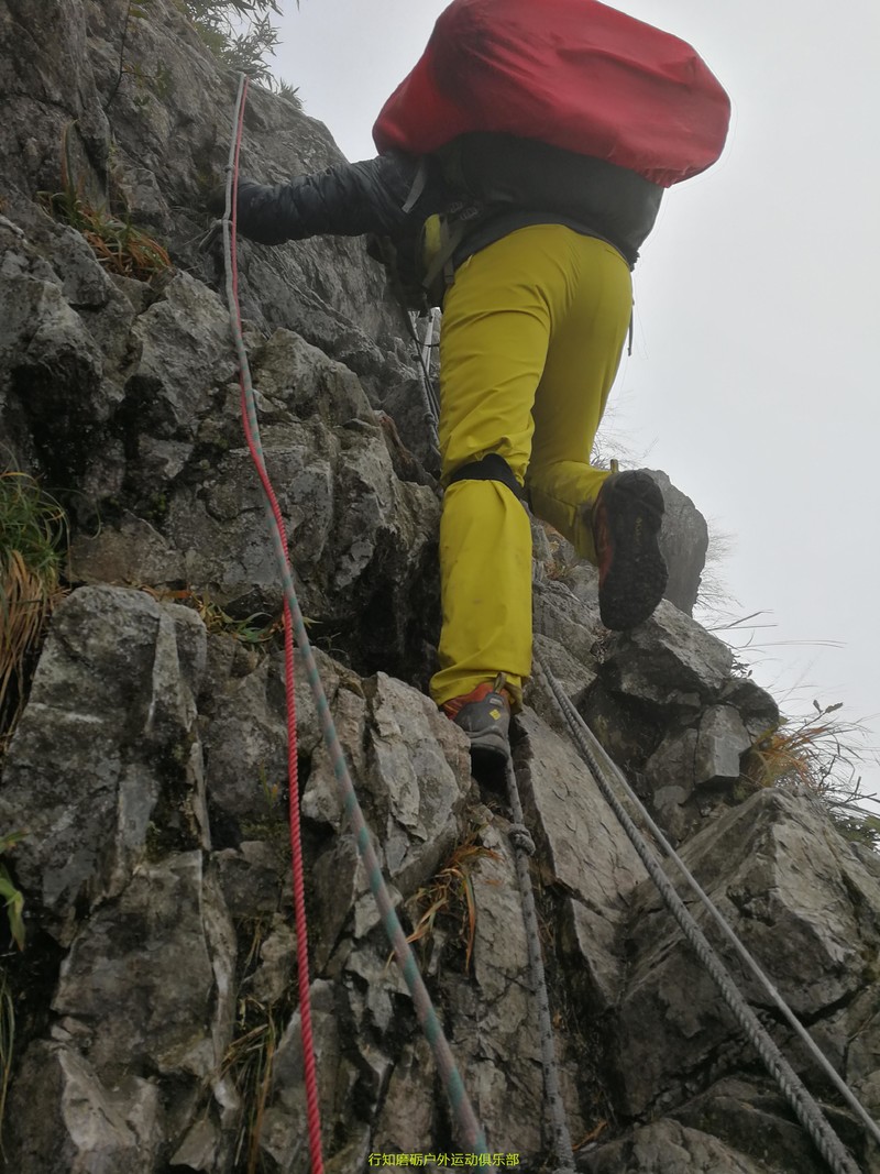 峰顶,装完逼,拍完照,16:05分离开顶峰向断崖出发,到达断崖时,和一个队伍有一点儿堵车,不过人家让着我们,我们迅速通过断崖,向第一个乱石坡出发。