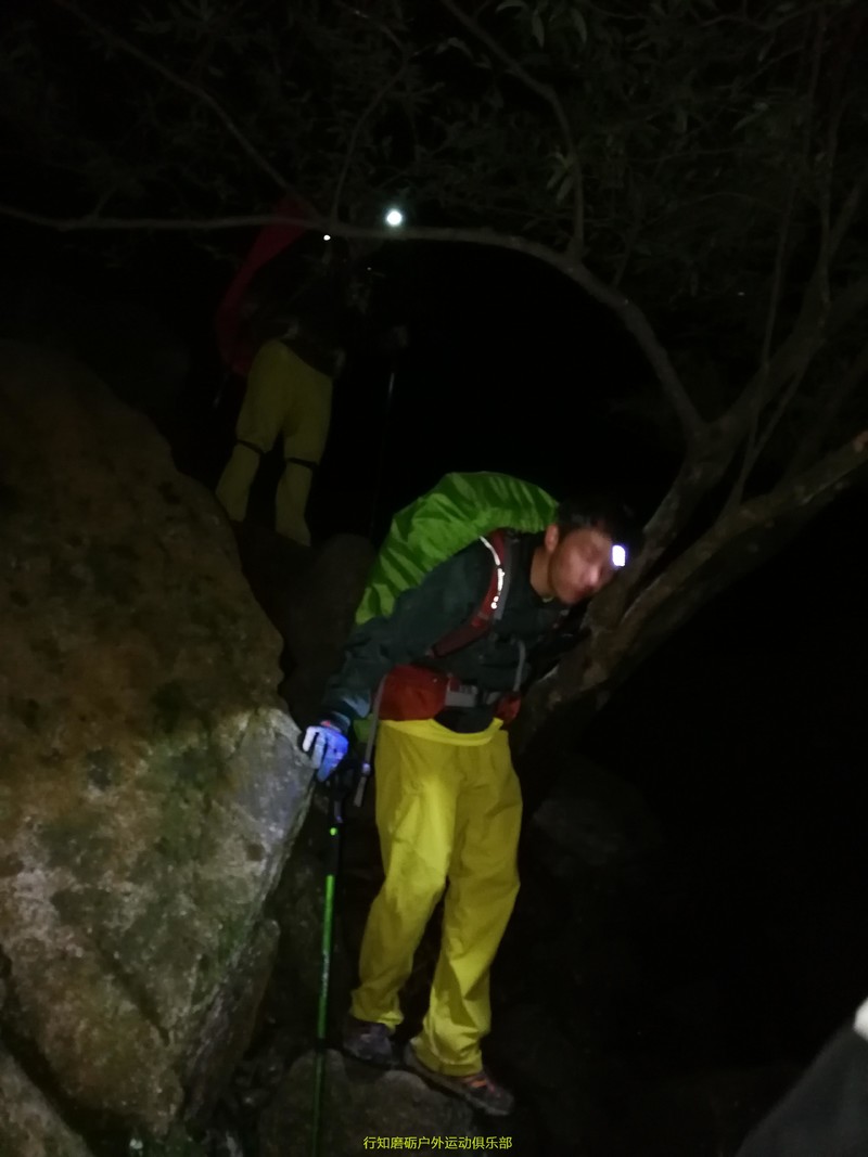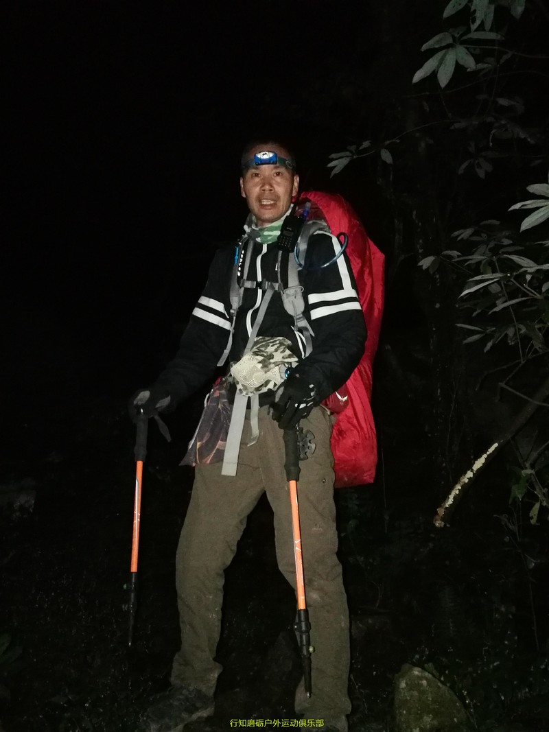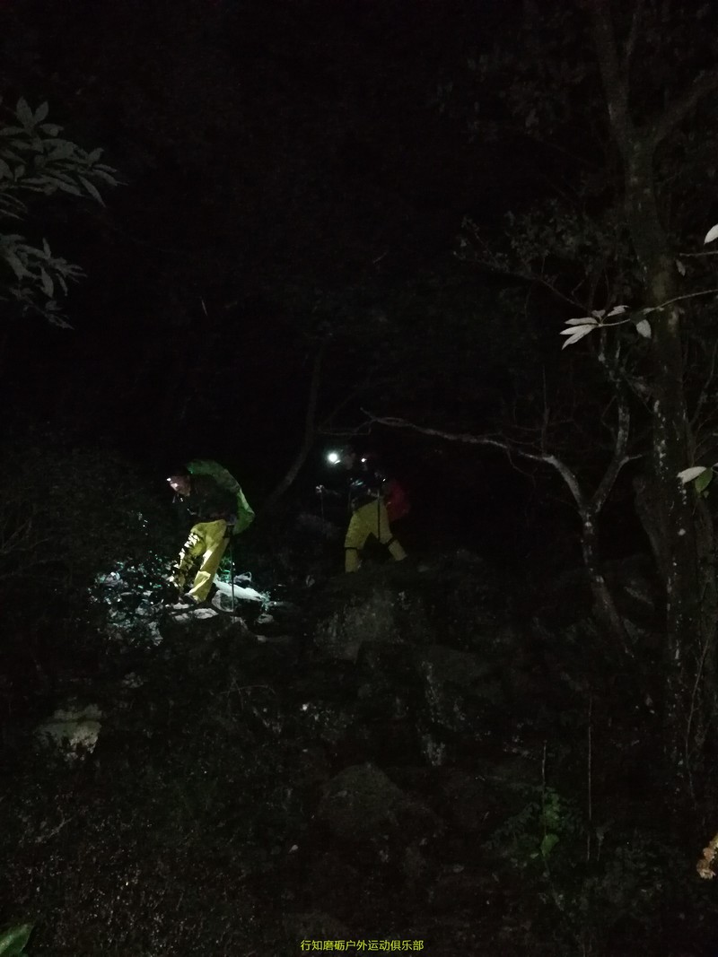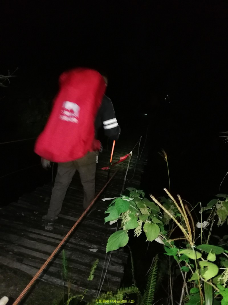 还没下完第二个乱石坡,就天黑了,这时,雄哥不小心摔倒了,小腿划伤,我们帮忙处理加休息半小时后继续前进,前面的路也不好走,乱石坡还没下到底,因为晚上,道路也不明显,途狼跟梅雨仰相继体力都透支了,我只有不断鼓励他们继续走下去,走到朔溪线路时,梅雨仰说膝盖实在太疼了,我就说你把护膝带上吧,他说没有,我大声问他,你刚才下到一半乱石坡时,我问你,你不是说有吗,只是带过了,没效果就不想带,他直接说,刚才没听清,把我气的。没办法,我把我的护膝帮他绑好,又和途狼平分了他的一些装备,没办法,继续走呗。