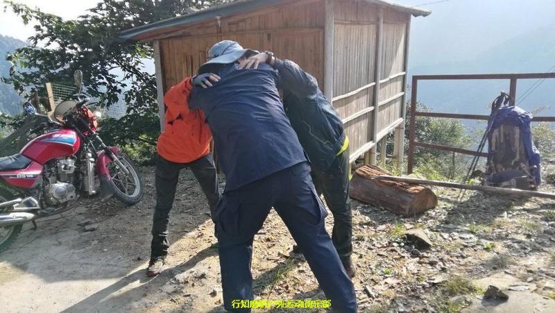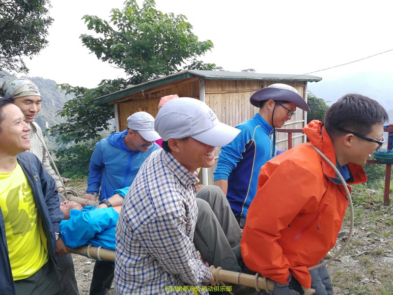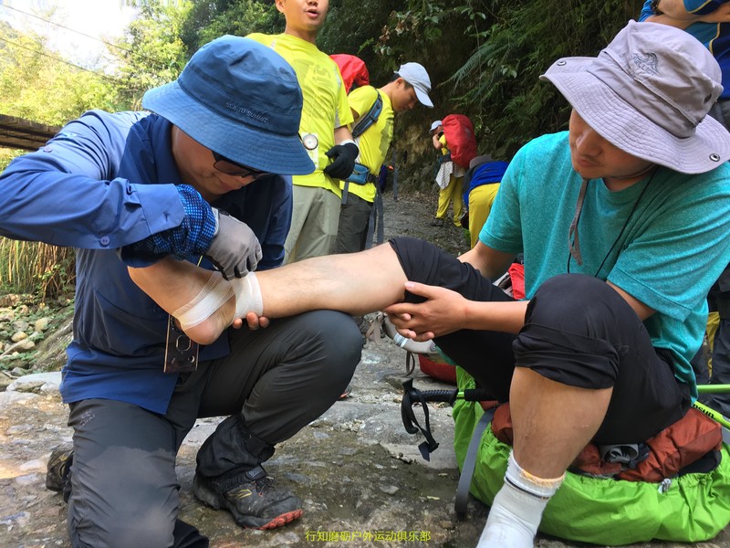 11:10分左右出发往CP8,一路下坡,走的很快,我被安排做伤员,学习急救课程,因为也没当过演员,所以演的不好,表情拿捏的也不到位,把戏搞砸了,不过队员们都很给力,分工明确,老杨迅速反应,帮我查看,还帮我敷了冰袋,小伙伴们有的打电话找车,有的帮我扛包,做的已经很不错了,不过也有做的不足的,不管伤势怎么样,大家没有形成一个有效的机制,要评估,队员的安抚,附近其他人员的清理等等,包括现场环境的评估,我们一直在河道里,教练也给我们挖坑,做一些危险的动作,没顾忌他。