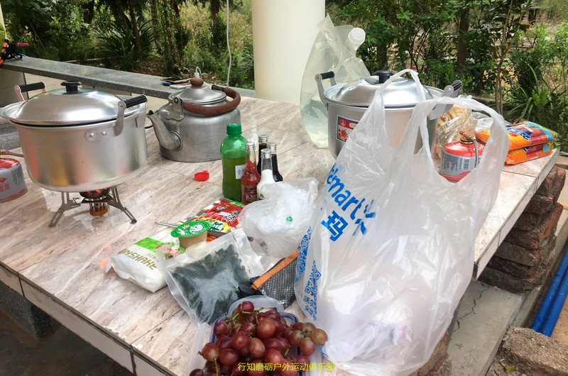 所有物资准备齐后,突然发现没有8人大锅!看着手里4套锅具不是单人就是3~4人小锅!心里一万头草.泥.马在奔腾!好在最终凭借三寸不乱之舌“煽动”起点同学自掏腰包买了两口6L铝锅急用,完美解决!耶!只是这小子私下里几次要我报销,让我有种深深的挫败感……