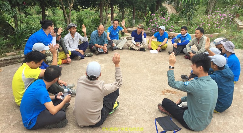 早餐过后,先是开会对昨天的也行进行总结,此时我才知道最后一组是14日凌晨4:30到的营地。总结会由方丈教练主持,他首先让每个组说说自己组昨天夜行的情况。每个组说完自己组情况后,方丈重点说了一下他跟的最后一组“紫阳、起点、罗衍岚和粒子”到达营地的原因,主要是他们一致按照方位角前进,殊不知道随着地形的变化方位角早就变了,此处应该分段导航;最后方丈讲了为什么安排这么一段夜行训练?原因有以下几点: