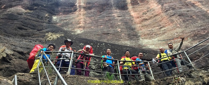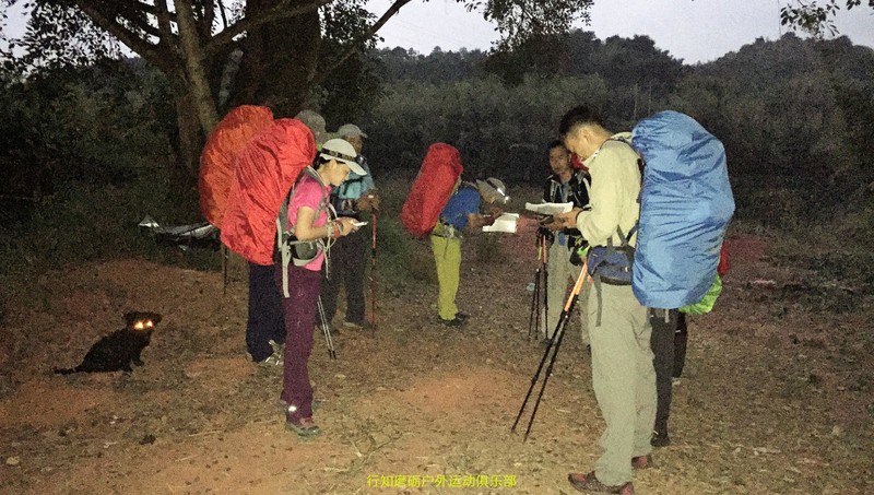 梅雨仰接棒时,天色已暗下来,大家纷纷带上头灯后!梅雨仰领队开始告诉我们此段路程的4D信息、并做了分工后,整队报数出发!我仍然担任摄影任务。