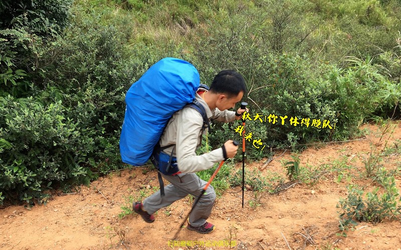 从“一户人家”到“金龟岩营地”这段路程本来是安排力狼同学领队的,但他当时要接“一个女盆友”的电话,就提议跟后面的梅雨仰换一下,并且告诉梅雨仰这段路就一条直路很好走!顺利的把梅雨仰带入坑中!后来才发现这绝对是个“大忽悠”。