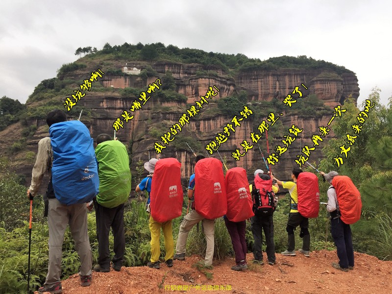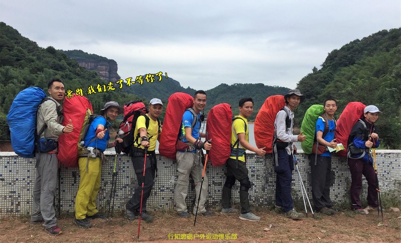 [6-一户人家营地合影] 如果要让我用几句话对本次旅程行程做一个总结,我肯定会说: 这是一次准备最充分的旅程,因为我们前所未有的花了比一个国庆假期还要长的时间来准备一次徒步; 这是一次准备最不充分的旅程,因为我们一路上漏洞百出、一路都是笑点、泪点、痛点…… 这是一次残缺的旅程,因为我们光荣的下撤了! 这是一次完美的旅程,因为我们的问题全部暴露出来了! …… 千呼万唤始出来——行前准备 假期总是那么短暂的,国庆假期,重装从麦理浩径回来后,一转眼就要开启:深登协K30磨砺领队班第二次野外实践课——“两天两夜丹霞山穿越”了;恍惚膝盖的老伤又隐隐作痛了,瞬间萌生了退出的想法!但最终因为一个执念——