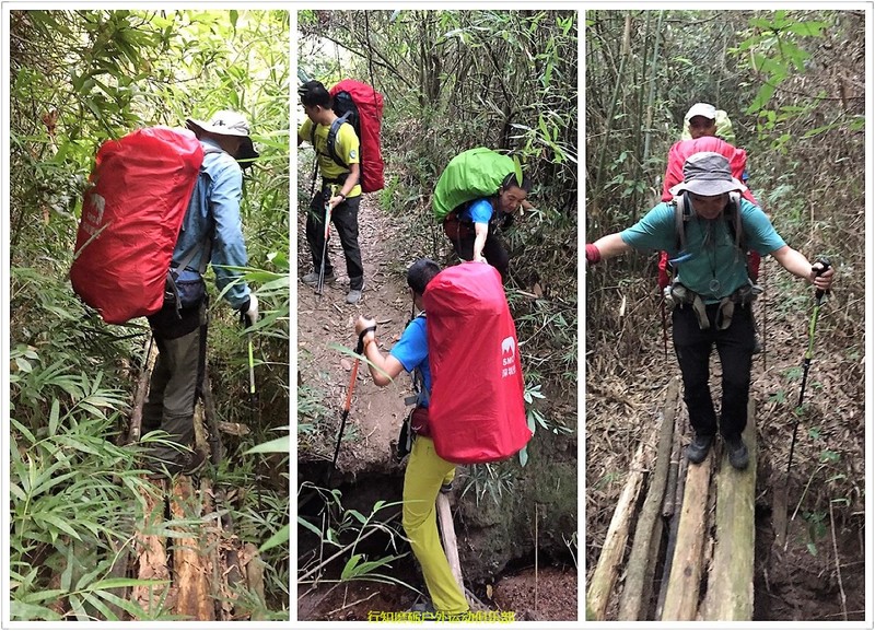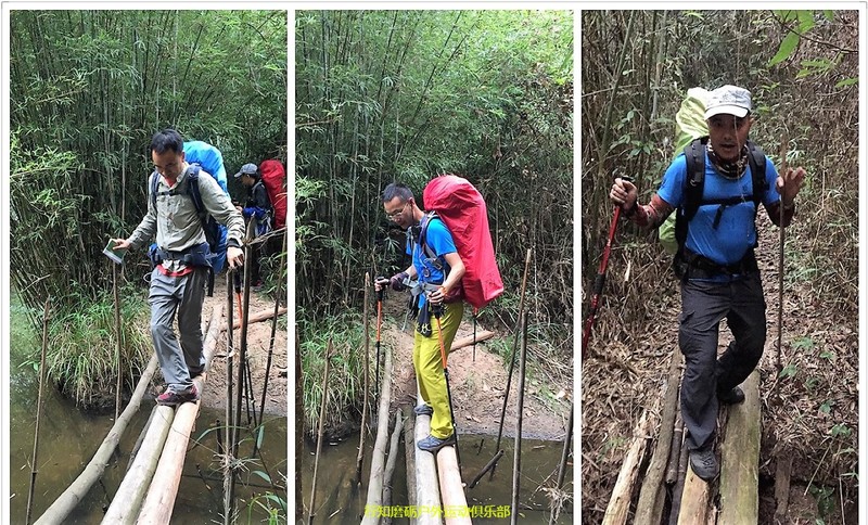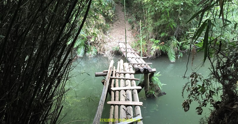 此后路就比较明显了,很长一段时间在竹林里穿行,不断过各种桥,有独木桥、有双木桥、还有“腐木”桥,就是没有一座“像样”的桥。每座桥都是绝佳马叉拍照的好地方(图)