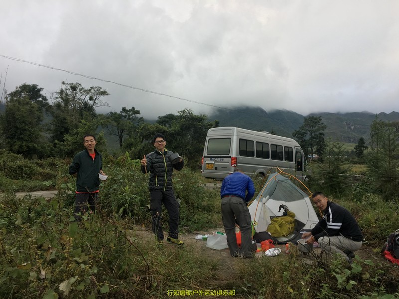 到了上张屋之后司机师傅准备进村,方丈提醒之后又缓慢退了出来,这大半夜的不能进村扰民的啊,然后向前方行驶了50米左右,找了一个空地扎营了。下车后那个叫冷啊,我赶紧穿一件衬衫,然后迅速开始扎营。大家速度也都够快,不一会功夫大家都钻到帐篷里了,哇,好暖和的帐篷。接下来都呼呼大睡了,如果第一次出门睡野地里,很多人应该七上八下睡不着的吧!看来我们领队班也算是合格了。哈哈