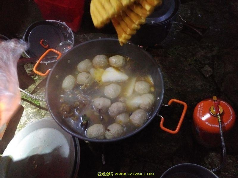 到了营地之后,开始我们的豪华晚餐,因为大家都知道今晚在这接近0度的山上,手机没有信号的地方可能会很难过。