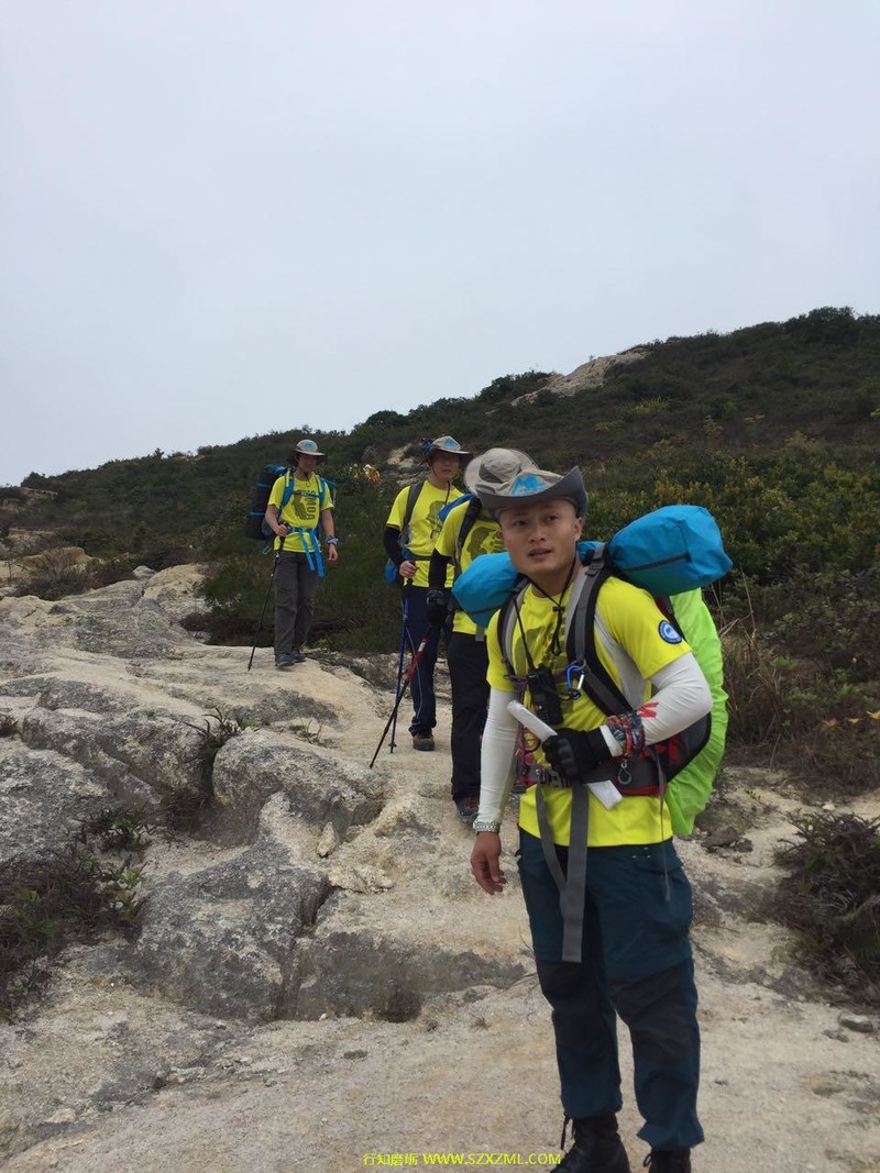 充满挑战性的野外课于3月25日在大鹏半岛的半天云拉开序幕(始点半天云,经抛狗岭—289—鹅公(营地)—大鹿湾—尖峰顶,终点西冲口),怀着激动的心情、共同的目标与伙伴们行走。  首先教练教大家怎样装包、起包。开始行走前,教练带领大家做一遍热身操,拉伸全身肌肉、关节,这样会更科学,更安全地行走。