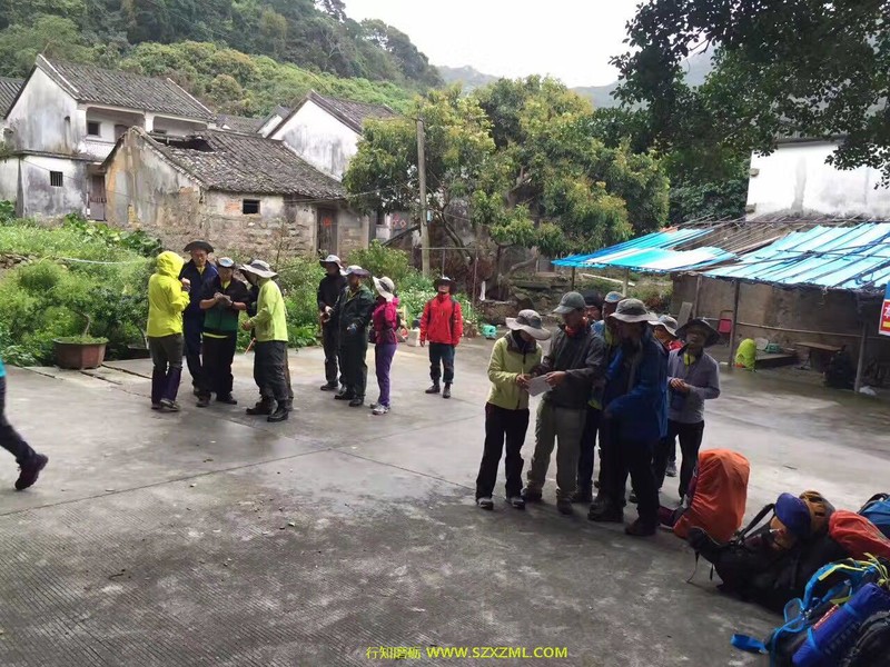我们一组学员10人,留影后经过一栋房子开始土路上山,途中专业知识丰富的情生教练给大家讲授登山杖的使用方法,上下坡背包技巧......