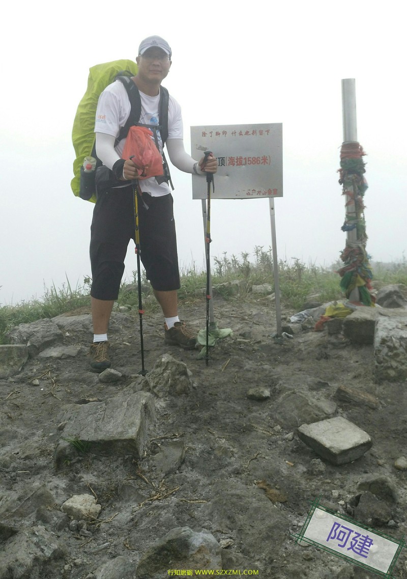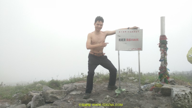天快要黑了,为了在天黑前到达船底顶1586米,中途没怎么休息,到顶了,所有人的疲惫,饥饿全无,都为了这一刻的装B卖荫,卖荫完才感觉风很大,雾很大,很冷,感觉要下雨一样。我还好,至少在高海拔5千米的雪线半裸过。大家觉得山顶风大,又冷又没水源,决定冲向白房子,少数服从多数,在激情的抗奋下,就像入党宣誓一样,高举右手,一口同声,白房子,拉残教练干干干,为了这誓言,这个决定,每个人都留下了难忘一页。