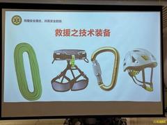 2025年4月9号,星期三晚 1. 基础装备清单 - 绳索(绿色)、安全带(黑色)、登山扣(金色)、安全帽(白色) - 2. 救援装备重要性 - 三大价值: - 最大化安全保障 - 提升操作灵活性 - 优化使用者体验 3. 合格装备认证标准 - 国际/国内认证:UIAA(国际登山联合会)、CE(欧洲标准)、GB(国标)、IFSC(国际攀岩联合会) - 要求:至少符合一项权威认证 4. 主绳(静力绳)核心参数 - 功能:连接施救者与保护点,坠落时减缓冲击力 - 结构: - 绳皮:抗摩擦,保护内芯 - 内芯:承重主体 - 性能数据(以11mm静力绳为例): - 直径:11mm - 承重:2900kg - 坠落次数:21次 - 静态延伸率:4.5% - 外皮滑动率:0.4% 5. 绳索分类与特性对比 特性 动力绳 静力绳 设计目的 吸收冲击力,保护坠落者 稳定承重,减少弹性 适用场景 攀岩、登山