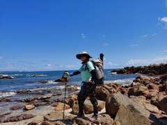 户外算起来有些年头了,不过这种重装穿越还是第一次,从报名开始,一直觉得自己不会有太大问题,但是还是高估了自己,50L背包12.5kg负重。     虽然跟大神级别的教练,罗大神(负重20多kg)他们差太远,对我却是极大的考验,第一天,海岸线穿越不到5公里,已觉得有些力不从心,教练看到大家貌似都有些累了,虽然还未到达预订的露营点,便就近选择露营,大家一起分享晚餐,倾听着海浪声,还有教练的户外知识分享,一天的疲惫荡然无存。。。       第二天,本来以为应该比第一天轻松,然而我们还是把教练想的太仁慈了(哭´;︵;`),开始一段公路以为这一天难度不会太大,但是后面的丛林穿越却让我们恨不能绑了教练直接打道回府。。。累并快乐着,一队人马互相帮助,一步一步。。。     终于到达了终点,累,确实是累,恨不能以后再也不出门了,但是还没到家呢,又期待下一次的户外了。。。 户外确实是个坑,可是却有