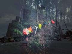 由于很久没有参加徒步活动,一开始,我还有点不适应,慢慢地就进去状态了。前半部分的上山路坡度还是可以平缓而容易接受的,爬了一段路程后,才发觉方丈教练带我们走的是一条苦行僧的自我修行之路!   我们慢慢来到了楼梯级和山路,在这条路上,内心深处的是各种挣扎。后面的山路越来越陡峭了,爬了一会我已经累的不行了。但看到班长的带伤负重守护安全,火焰和诀方的初体验坚持,芬芬珍珍的超负重坚持,包朝人的年轻无畏向前和平珍的谈定而行,又有何理由不坚持前行呢! 迎面而来一场雷暴雨,让我们有点措手不及,行走一段路后,实在太大雨了。   我们在半山淋雨并在雨中上了一节别开生面的实践课:方丈教练教我们如何在现实情景中如何做好安全防护措施和应对措施,受益匪浅! 阳光总在风雨后,雨小而转停,继续前行的路上,一路上的瀑布,野生杨梅,蘑菇,毛桃……我们一边沉浸在好山好水之中,一边是教练的言传身教。仿佛忘记了外界一切尘埃,