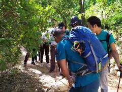 2018.10.5二星户外爱好者——国庆专属班开班,地点:甘坑客家小镇,主讲:方丈。课上,方丈教练从户外运动的含义,户外运动的准备,户外运动的经典案例与身边案例,层层递进,向我们传递了“安全、科学、团队、自主、环保”的户外理念,使我们能更加安全、健康的进行户外活动。10.6日启程惠州罗浮山,开展为期36小时的户外体验课程,人员总数:13人,包含教练:方丈。8:30由深圳体育馆出发,10:30分到达惠州罗浮山下出发点,在领队大风协调下,物资重新分配打包。11:00在教练的指导下,现场实践地图与指北针使用。热身运动后,12:00准时出发。行进过程中,方丈教练讲授了,团队行进,出发,休息等的一些技巧,使我们一路上,没有一人掉队,哪怕如此陡的坡,大家依然如履平地。到达第一目标点,方丈在做方位角定位教学到达营地,教练讲解如何选择营地,管理营地,演示如何扎营在教练指引下,大家尊重佛教信仰,在寺庙外做饭