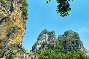 洞天仙境生态旅游度假区(又名穿天岩)在英德市九龙镇西面2公里,是一个溪流穿山而过的岩洞,乘船游览,流程约200米,洞内洞厅广阔,钟乳石形态多样,洞顶有2个穿孔通天,光线从中透入洞里。洞内有一片陆地,生长着茂盛的阴生植物,密密麻麻,枝叶婆婆,呈原始状态,像这样的洞内小森林确是一个罕风奇观。看着这里有光、有水、有地、有林,感觉像走入另一个世界,“别有洞天”可能就是这样一意境吧。
