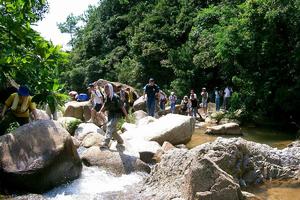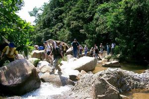 马峦山位于广东深圳市东部山区也是三洲田环线绿道,有最大的瀑布.谷内岩石因水流冲刷而形成各种形态,大小不等,且呈犬牙交错之壮溪水清澈见底,山谷两旁植被浓郁,藤蔓横生,野花遍地,偶尔伴有的几声鸟叫虫鸣,会使此地更显静谧。此地穿越难度不高,但景色秀丽,是一个休闲游玩的好地方。