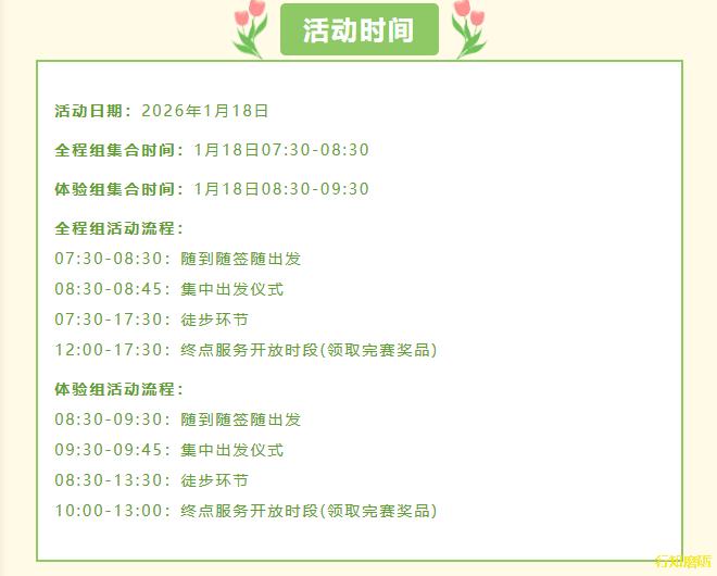 体验组集合时间:1月18日08:30-09:30
